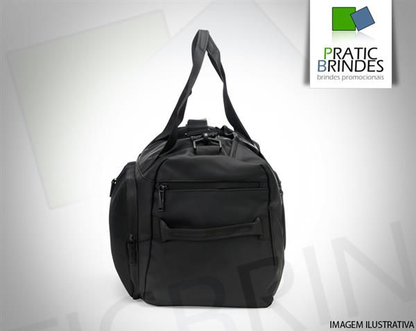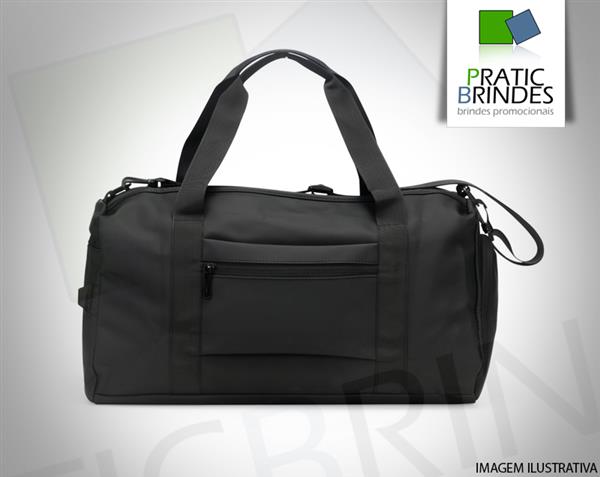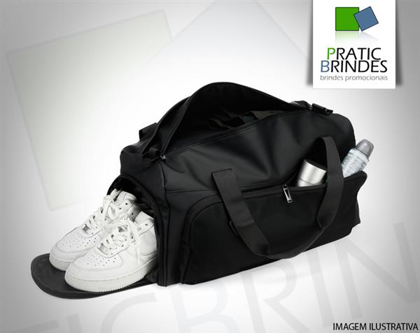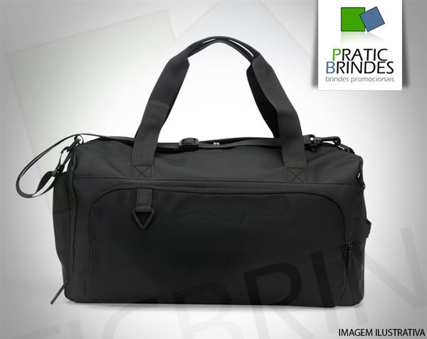 Bolsa confeccionada em couro sintético com capacidade de até 32 litros. Apresenta compartimento interno com bolso de zíper e outros dois bolsos abertos. Conta ainda com cinco compartimentos externos em diferentes tamanhos, incluindo um lateral dedicado para tênis, um bolso menor com encaixe para malas e outro para itens molhados. Possui duas alças de mão e alça transversal removível. Tamanho aproximado 34 x 48 x 21,5 cm. (AxLxP).