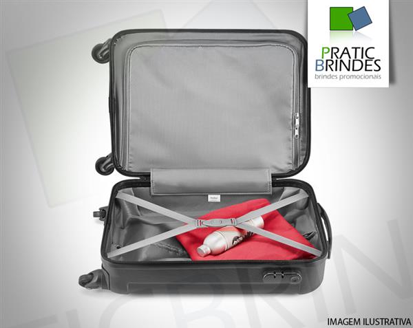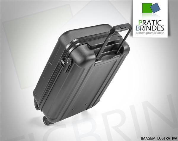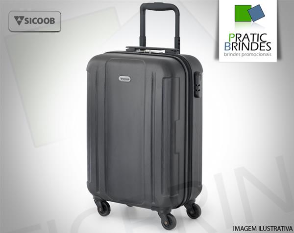 Mala de viagem executivo em ABS com interior forrado e divisória, fecho de segurança com senha na lateral, 04 rodas giratórias, pega extensível em alumínio com mola (altura da pega estendida até 500 mm) e placa (5x2cm - LxA) metálica para gravação, capacidade até 31 litros e tamanho aproximado de 35,5 x 55 x 20 cm. (LxCxP).